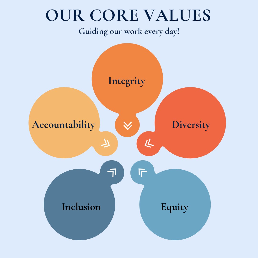 We hold ourselves accountable for advancing Diversity, Equity, and Inclusion (DEI) principles in all aspects of our organization. We track and measure our progress, and we are transparent about our efforts and outcomes. We continuously learn and adapt our strategies to ensure we are making meaningful progress.